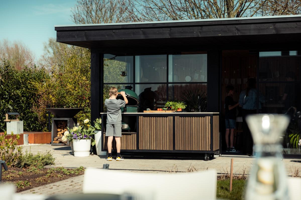 Dankzij de extra breedte is er meer ruimte voor accessoires, snijwerk, en het voorbereiden van gerechten. Dit model is perfect voor wie graag uitgebreid kookt en zijn buitenkeuken als volwaardige werkplek gebruikt.