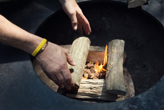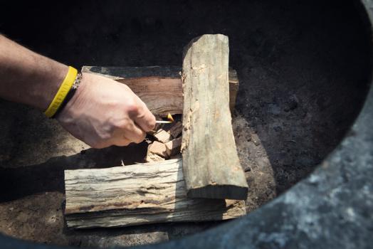 - Maak een wigwam van gedroogd hout en steek daaronder aanmaakblokjes aan. Ovengedroogd beuken- en essenhout werken heel goed.